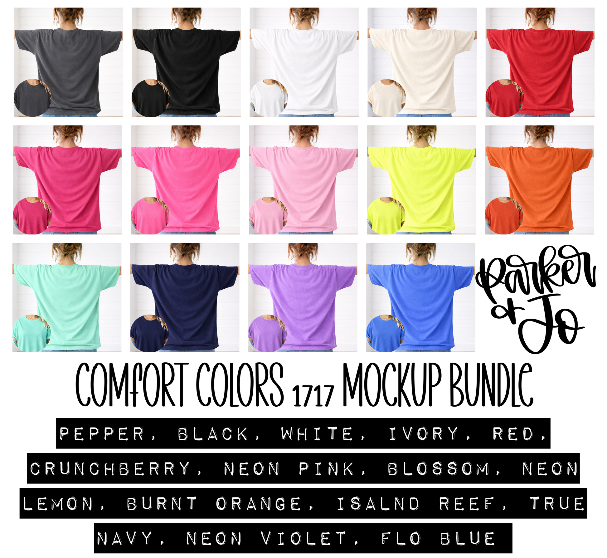 Comfort Colors 1717 Across the Back with Front View Mockup Bundle